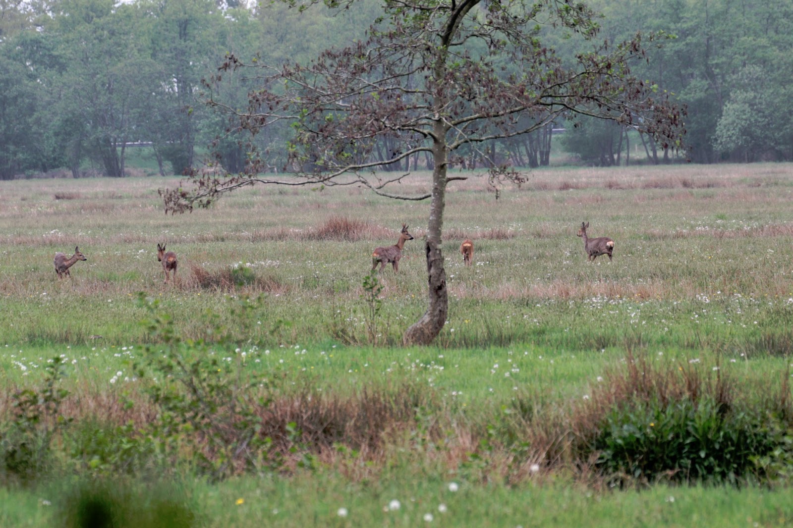 Aan de westzijde loopt een smal paadje door het bos langs de houtwal die grenst aan de open percelen aan de rand van het terrein. Daar lopen vaak reeën, maar je moet wel heel stil sluipen wil je ongemerkt enigszins kunnen naderen. Eén krakend takje onder je schoen en wég zijn ze.